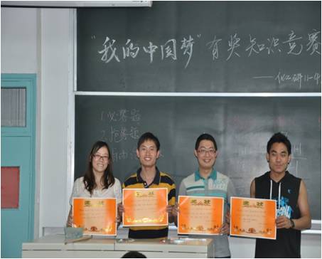 近日,化工研11-4黨支部舉行了“我的中國夢”有獎知識競賽活動。支部組織同學們參觀中國國家博物館復興之路展覽和軍事博物館,形象直觀的對同學們進行教育;并向每位同學發放了學習資料,組織大家學習黨的十八大報告和《十八大黨章學習讀本》等材料,競賽分為必答題,搶答題與自由論述題,同學們自由組建4支隊伍參加,競賽現場氣氛活躍,充分調動大家學習的積極性,加深對中國夢的理解,使中國夢深入人心。活動結束后,支部成員以所在小組為單位撰寫了心得體會,結合自身實際,細談了對中國夢的認識,及對今后學習,工作的展望。