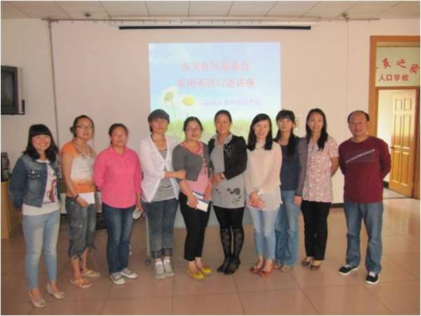 5月17日上午,石大外國語學院英語本10、12級黨支部與昌平區東關社區居委會黨支部聯合承辦的東關社區工作者英語口語培訓活動在東關社區居委會服務站舉行。為了幫助社區改進對不懂漢語的外籍居民的管理情況,10、12級黨支部挑選出兩名黨支部成員,在輔導員王霞玉同志帶領下來到東關社區服務站,對東關社區居委會工作人員進行了首次相關實用英語口語培訓。