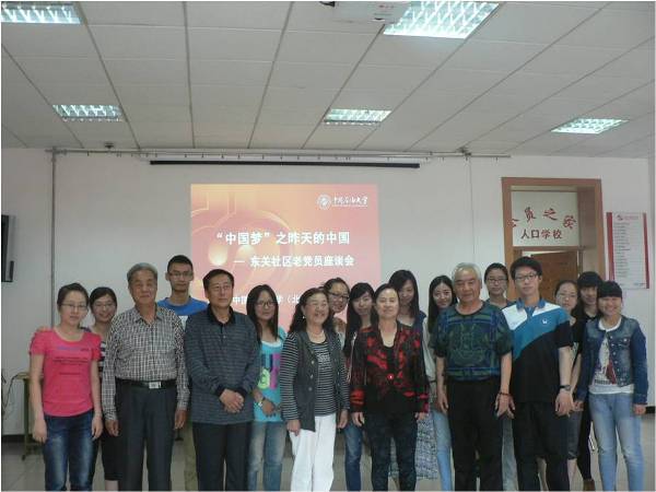當日下午,黨支部在東關社區服務站舉行了“中國夢之昨日的中國”紅色1+1黨支部活動。邀請到原昌平區委市政工委葉生亮、原第三中學高級教師齊淑英、原交通管理學院教師崔淑香、魔術世家李順成及原部隊文藝干事孟祥林等老黨員與同學們一起暢談了中國的歷史、改革開放以來中國發生的翻天覆地的變化以及大家對“中國夢”的理解。同學們在與老黨員交流后,深刻認識到新中國成立以來對自強民主富強文明的不懈追求是“中國夢”提出的歷史根源,而改革開放三十年所帶來的政治、經濟、文化的變革則是“中國夢”得以提出并逐步圓夢的現實基礎。
