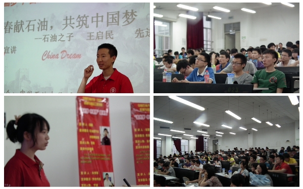 宣講團成員朱勇男同學作了題為“青春獻石油,共筑石油夢”的演講,介紹了老一輩石油人王啟民的先進事跡;冷陽同學作了題為“三老四嚴代代傳,鐵人精神永向前”的演講,介紹了石油人的鐵人精神;易璐同學作了題為“石油里開出的鏗鏘玫瑰”的宣講,介紹了宮敬教授的感人事跡等等。這次宣講,讓大家領(lǐng)略了老一輩石油人的風采,讓學生擁有了屬于自己的“中國夢,石油夢”。