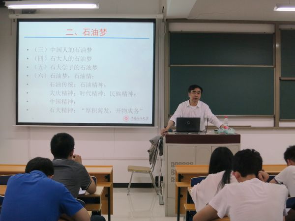 曹培強(qiáng)從個(gè)人成長的問題開始逐漸將同學(xué)們引入“中國夢”主題,并以“大學(xué)夢,石油夢,中國夢”為主線,分別闡述了“一個(gè)怎樣的大學(xué)時(shí)代”、“一個(gè)怎樣的能源格局”和“一個(gè)怎樣的中國世界”,從石大人的石油夢、石油情延伸到了對中國夢內(nèi)涵與特征的理解,以及對中國夢歷史淵源以及實(shí)現(xiàn)中國夢路徑的認(rèn)識(shí),為同學(xué)們描繪了一名石油教師眼中的中國夢想。