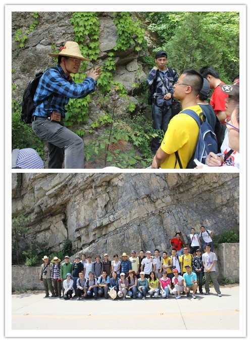 活動邀請了石大教師童亨茂作為指導教師,帶領兩校同學對蟒山周邊的地質剖面進行了考察。在考察過程中,童亨茂首先向大家介紹了華北地區的構造演化背景,然后帶大家考察了蟒山周邊中上元古界的地層以及中生界的火山碎屑巖,并同大家一起討論了該區的一些構造現象。考察過程中,同學們專注投入,討論熱烈,現場氣氛十分活躍。