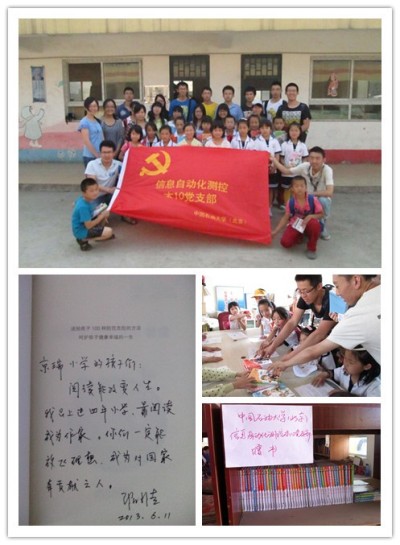 6月14日,該學生支部前往京瑞小學開展“關愛外來務工人員”活動。為京瑞小學的學生們送去了“童話大王”鄭淵潔老師的童話書籍。其中包括一本由鄭淵潔親自為京瑞小學的學生們手寫贈言的圖書,他寄語京瑞小學的學生們:“閱讀能改變人生。你們一定能放飛理想,成為對國家有貢獻之人”。支部成員精心制作了一組生動活潑的“暑假安全知識圖”,向京瑞小學的學生們宣傳暑假安全知識,提升他們的安全意識。另外,支部成員還向每一位小朋友送去一封信,鼓勵小朋友不畏艱辛,堅持夢想。