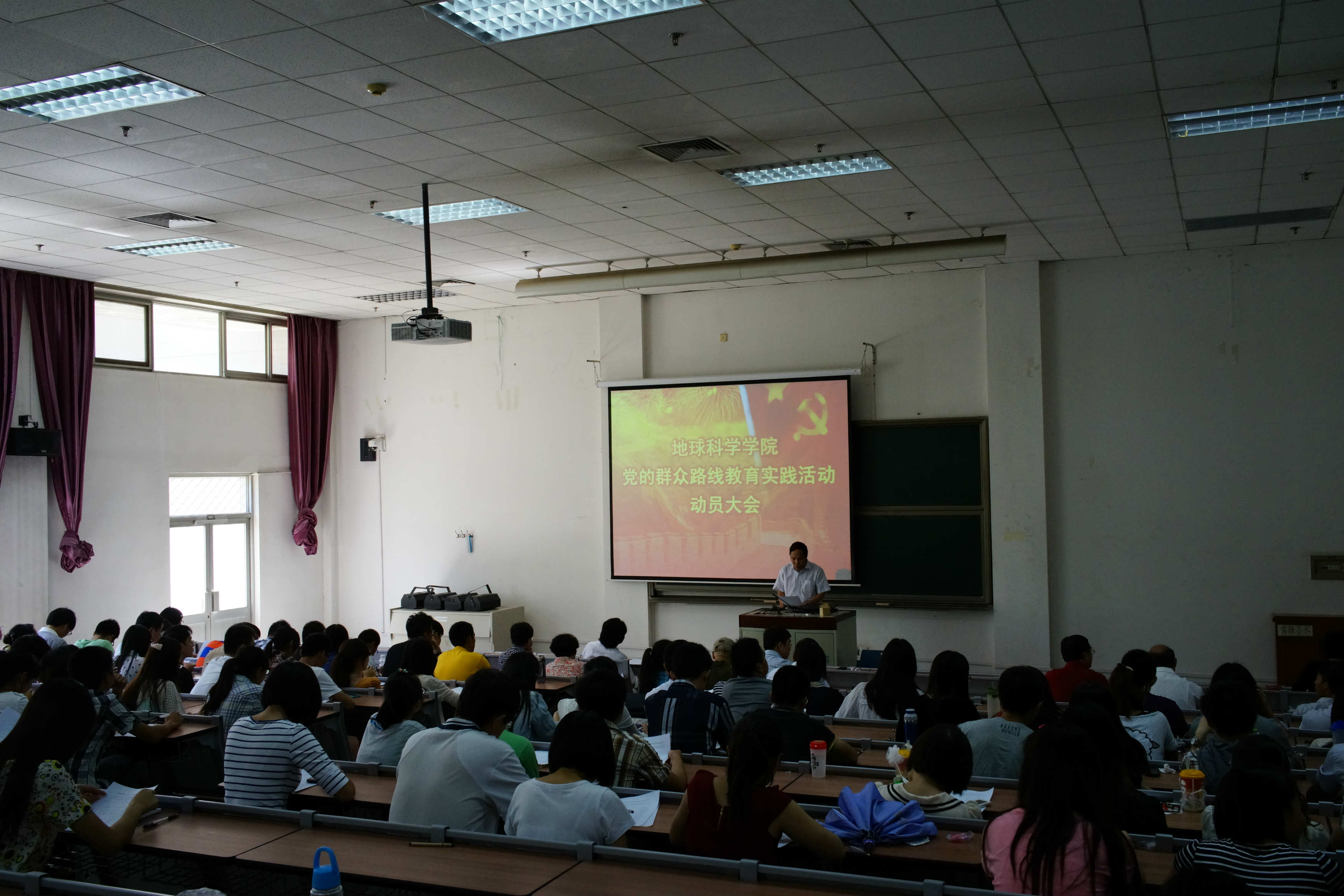 9月10日,中國石油大學地球科學學院在地質樓階梯教室召開黨的群眾路線教育實踐活動動員大會。地球科學學院全體教工黨員和全體學生支部委員參加了動員會。
