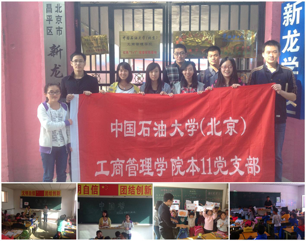 10月11日,石大工商管理學院本11黨支部前往昌平區樓自莊新龍學校開展“少年中國夢•頌祖國 繪藍圖”主題支教活動。