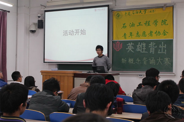 11月8日晚,石油工程學院青年志愿者協會在三教108舉辦“英雄背出”新概念英語單詞背誦大賽。