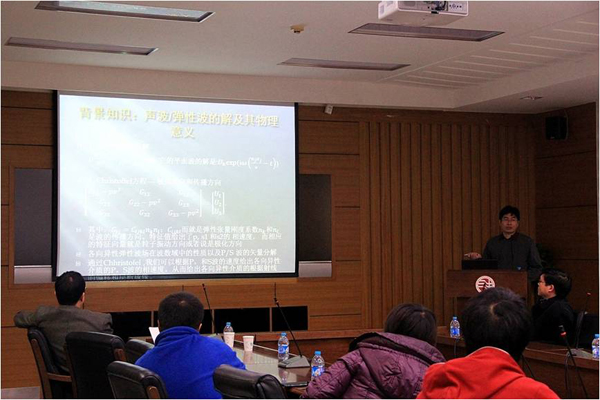 在報(bào)告會(huì)上,張群山博士介紹了通過(guò)逆時(shí)偏移(RTM)獲得低波數(shù)速度信息、角度域共成像點(diǎn)道集(ADCIGs)等方面的最新研究成果,并與到場(chǎng)師生展開(kāi)了熱烈的討論與交流。