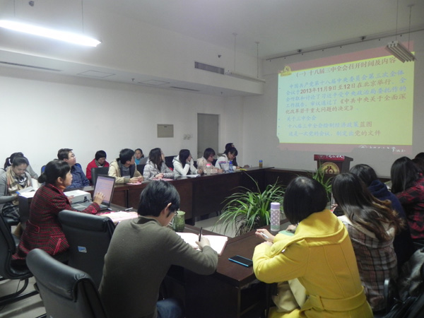 會上,肖中瓊為與會人員導(dǎo)讀剛剛勝利召開的黨的十八屆三中全會會議精神,為大家講解此次三中全會的新看點和主要議題;同時她還指出當(dāng)前學(xué)院各黨支部在工作中普遍存在的三大問題,明確下一步黨支部書記日常工作要求。