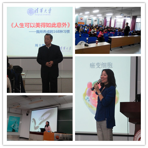 蒞臨講座的三位嘉賓分別是:大眾汽車培訓主管苗瀅月;奧美公關蔡娜;清華大學教授周士淵。苗老師講述了在她戰勝病魔后重新面對生活的體驗,告訴同學們要勇于放下別人的期待做真正的自己,真正的成功是當自己回首時對自己感到滿意。蔡娜的講座主題是“做自己是最深刻的反叛”,她通過自己的親身經歷向同學們傳遞了堅持夢想,不要向現實妥協,勇于追求夢想的思想。周士淵通過幽默通俗的言語和生動有趣的事跡給同學們帶來了以“人生可以美得如此意外”為題的演講,以自己為例,教導同學們要養成好習慣。