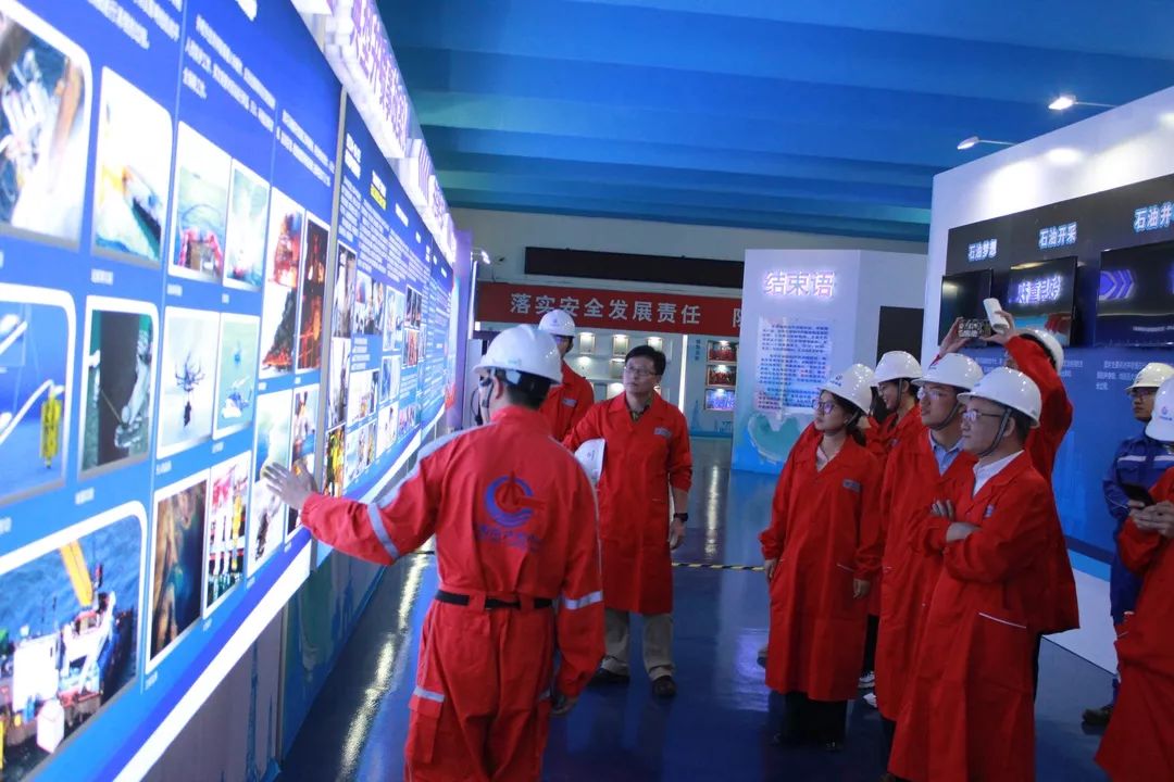 雙方代表赴海洋石油培訓中心開展參觀學習。在井控中心展覽館,了解海洋石油工業重大事故,尤其是海洋平臺發生井噴失控事故處置情況,學習中海油井控風險管控措施,了解了一系列平臺救援裝備。在模擬鉆井施工現場,黨支部成員登上鉆井平臺和司鉆間學習井架結構,了解一線作業現場的工作情況。