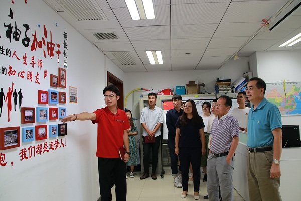聘任儀式前,李光和、李振林、戴兵到學院輔導員辦公室了解了反映輔導員值勤情況的人員信息表、人員去向牌,觀看了輔導員學期工作要點展板、照片文化墻等。