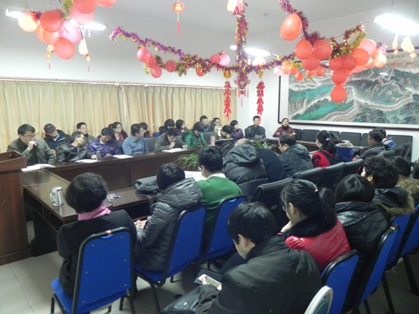 會上,副院長趙秀鳳通報了上學期末新增漢語國際教育碩士專業學位授權點的好消息,這標志著我院學科建設再上新臺階;她結合前一天黨政聯系會討論結果通報了學院2014年十項重點工作,涉及到學院黨建和大學生思想政治教育、教學改革和日常教學規范化管理、科研團隊建設、對外交流、學科建設和學院內部管理等方面,讓全體教師對全年工作做到心中有數;并結合新一輪崗位聘任工作和上學期學院工作中暴露出來的問題強調了相關注意事項。