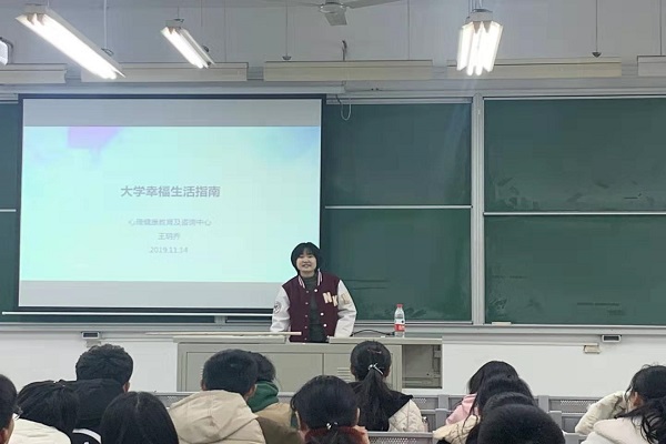 11月14日,石大經濟管理學院在第三教學樓舉辦“大學幸福生活指南”心理專題健康講座,學院2019級全體新生參加了活動。