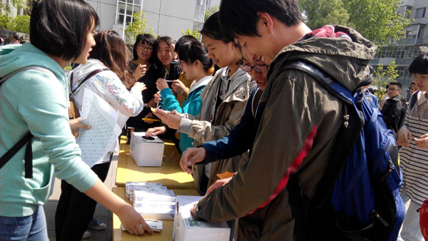 當前位置: 首頁» 院系經緯 石大地球科學學院舉辦“慶祝中文語言日”活動 發布時間:2014-04-28 | 來源:地球科學學院 | 作者:張藝樓 | 瀏覽量: “追溯前世無邪記憶,感受中文語言魅力”,4月21日中午,石大地球科學學院在南廣場舉辦了“慶祝中文語言日”活動。 本次活動分為兩部分,看謎面猜字和看甲骨文猜漢字。豐富多彩的活動內容吸引了同學們前來參與,凡參加者均可獲得一枚精美書簽作為紀念,除此之外,只要猜對漢字就有精美禮品相贈。 本次活動不僅使同學們感受到了中華語言文字的強大魅力,也激發了同學們學習漢字文化的濃厚興趣。 分享到: 排行榜 薦讀 中石大召開2024年全面從嚴治黨工作部署會暨... 對口支援中國石油大學(北京)克拉瑪依校區工作... 中石大獲評 “昌平區學習型示范高校” 中國石油大學2022年十大新聞揭曉 新年賀詞 | 雄關漫道 惟有登攀