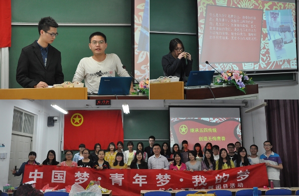為進(jìn)一步引導(dǎo)和激勵(lì)團(tuán)員青年繼承和發(fā)揚(yáng)“五四”運(yùn)動(dòng)光榮傳統(tǒng),5月7日下午,石大工商管理學(xué)院會(huì)計(jì)2012-2團(tuán)支部開(kāi)展了“中國(guó)夢(mèng)•青年夢(mèng)•我的夢(mèng)”紀(jì)念五、四運(yùn)動(dòng)主題團(tuán)日活動(dòng)。工商管理學(xué)院黨委副書(shū)記羅曉燕、校團(tuán)委副書(shū)記孫凈宇出席了活動(dòng)。