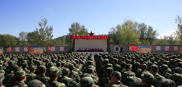 /9月15日上午,中國石油大學2014級新生軍訓開訓典禮在平北軍訓基地舉行。校黨委副書記雷玉江,平北軍訓基地、承訓部隊相關領導以及學生工作處、校團委和各學院主要負責人出席了典禮。本次軍訓共有1900余名新生參加。