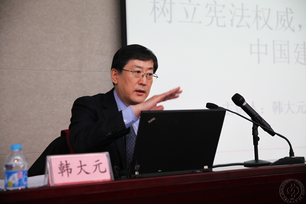為深入學習貫徹黨的四中全會精神,進一步深化師生對全面推進依法治國重要意義和實現路徑的認識,12月18日下午,中國石油大學在國際交流中心報告廳舉辦形勢政策報告會,邀請“長江學者”特聘教授、中國人民大學法學院院長韓大元教授作了題為“樹立憲法權威,推進法治中國建設”的報告。
