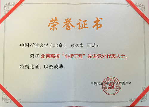 4月5日,北京高校統戰工作會議在北京會議中心召開,會議對北京高校“心橋工程”優秀項目及先進黨外代表人士進行了表彰。九三石大支社主委、理學院教授張萬松負責的“創建高校科普基地、提高社會科學素質”項目獲“心橋工程”優秀項目稱號。致公黨黨員、人文藝術教育中心教師賴達富獲“心橋工程”先進黨外代表人士稱號。