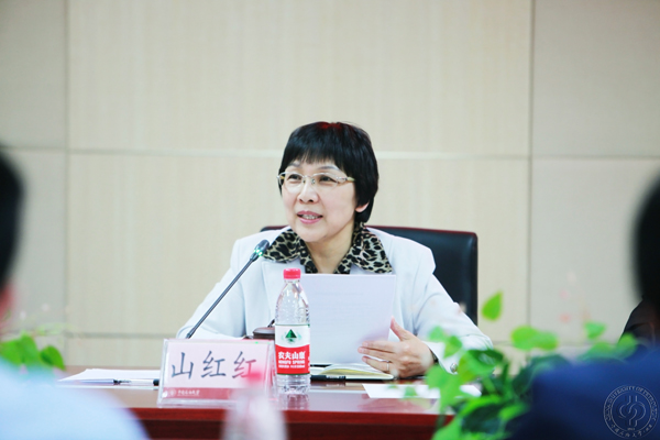 山紅紅指出,進一步加強和改進思想政治工作,必須緊密結合學校實際,堅持問題導向,抓住主要矛盾。要在用好課堂主渠道、加快構建中國特色哲學社會科學學科體系和教材體系、注重以文化人以文育人、運用新媒體新技術等方面推動思想政治工作改革創新,尤其要在用好課堂教學主渠道、注重以文化人以文育人上重點發力。在強化課堂主渠道上,思政課教師要真學、真懂、真信、真用馬克思主義理論,用心投入,創新方式,做好對學生的價值引領;要吃透、用好中國特色哲學社會科學教材和教學大綱,堅持理論聯系實際,讓思想政治理論課真正“入腦入心”;要進一步加強校園文化軟硬件建設,為學生營造和諧、高雅、有內涵的校園文化氛圍,實現以文化人以文育人;要聚合、拓展、運用好新媒體力量,增強思想政治工作時代感和吸引力,守好意識形態陣地。