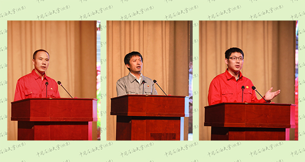 報告中,5位報告人以生動質樸的語言,深情講述了全國優秀共產黨員、中國石油海外杰出員工、尼羅河公司副總工程師王杰,全國勞動模范、津門工匠、渤海裝備中成機械公司潛油電泵廠下線班班長黃玉梅,全國優秀共產黨員、全國勞動模范、全國民族團結進步模范、新疆油田重油開發公司采油班班長肉孜麥麥提巴克,全國技術能手、全國青聯常委、國務院特殊津貼享受者、寰球工程公司吉林化建焊接工作室主任徐龍杰,中國石油集團公司模范集體、西部管道公司霍爾果斯作業區團隊的先進事跡,展現了石油一線優秀員工弘揚“石油精神”、踐行“我為祖國獻石油”,立足崗位做貢獻的精神追求。感人至深的講述,深深感動和震撼了在場師生,熱烈的掌聲不時在全場響起。