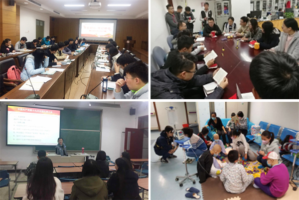 各院級單位黨組織舉辦十九大精神主題交流座談會,師生們結合實際工作暢談學習體會。地球科學學院舉辦主題為“不忘初心,牢記使命”的學生干部交流座談會,學生干部從提高自身站位、加強自身能力建設、加強社團內部建設等方面結合十九大精神談了學習體會。機械與儲運工程學院與新陽光慈善基金會黨支部共同開展了十九大精神學習座談會,并在座談會后投身新陽光慈善基金會的志愿服務中。工商管理學院黨支部開展微型黨課,黨員開展十九大報告自學,針對報告的亮點、結合個人興趣點,輪流講十九大報告。
