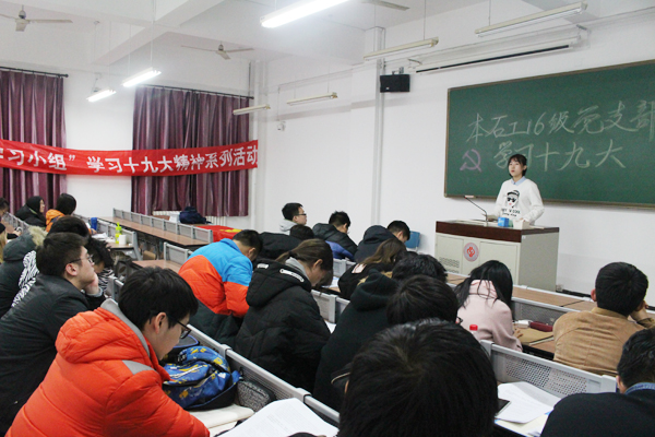 各單位還開展了形式多樣、內容豐富的活動。地球物理與信息工程學院開展教師與學生寢室結對子活動,學院教師付建偉、謝豪走進學生宿舍,向學生宣講十九大精神,與學生談心,對學生進行學業指導,作學生思想上、學習上、行動上的領路人;馬克思主義學院舉辦“十九大精神進課堂”藍墨云示范課,理學院黨委副書記楊東杰分享了他在教學中運用藍墨云的經驗,介紹了如何利用藍墨云進行課程創建、課堂管理、班級分組討論、資源推送與分享等。石油工程學院2017級研究生各黨支部共同舉辦了學生黨建“六個一”工程之“學思踐悟十九大”特色活動暨十二月創新組織生活會,石工2016級本科黨支部舉行了學習十九大精神讀書報告分享會,支部成員暢談了學習十九大精神的體會和感想。