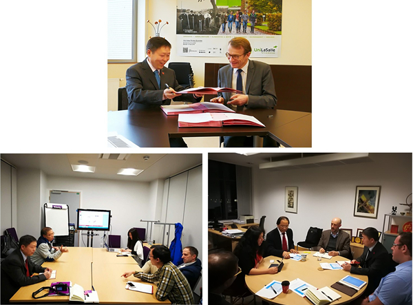 訪問(wèn)期間,代表團(tuán)一行分別與法國(guó)拉薩爾大學(xué)校長(zhǎng)菲利普·肖凱、英國(guó)曼切斯特大學(xué)校副校長(zhǎng)Stephen Flint、英國(guó)利茲大學(xué)副校長(zhǎng)余海歲及三校相關(guān)學(xué)院教師代表進(jìn)行座談交流,在加強(qiáng)校際合作關(guān)系、聯(lián)合培養(yǎng)學(xué)生、短期學(xué)生交流、教師互訪、科研合作交流等方面達(dá)成合作一致,分別簽署合作協(xié)議或合作備忘錄,并就下一步工作開展制定實(shí)施計(jì)劃。