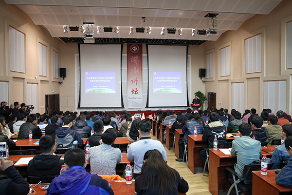 張來斌在揭牌儀式上致辭。他表示,為進一步貫徹落實國家創新發展戰略,深入開展學術交流活動,更好地強化創新學術氛圍,激發科研創新活力,提高學校學術影響力,促進學校“雙一流”學科建設和學術水平不斷提高,學校于2017年底提出設立高端學術講壇,經過廣泛征集定名為“蟒山講壇”。“蟒山講壇”以“創新學術、引領未來”為宗旨,將通過邀請國內外知名專家學者來校進行學術講座,進一步營造良好的學術氛圍,開拓學術視野,啟迪學術思想,更好地促進學校學術水平和創新能力的快速提升。他強調,“蟒山講壇”開講也標志著學校65周年校慶學術系列活動正式拉開帷幕。