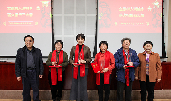 山紅紅、張來斌為退休教職工頒發了榮譽證書和紀念杯。吳小林宣讀了2018年退休教職工名單。