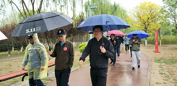 活動中,校友們分組結伴而行,雨中共賞春日景色,相互交流近況,追憶美好時光,暢敘校友情誼,完成了5公里的健走路程。