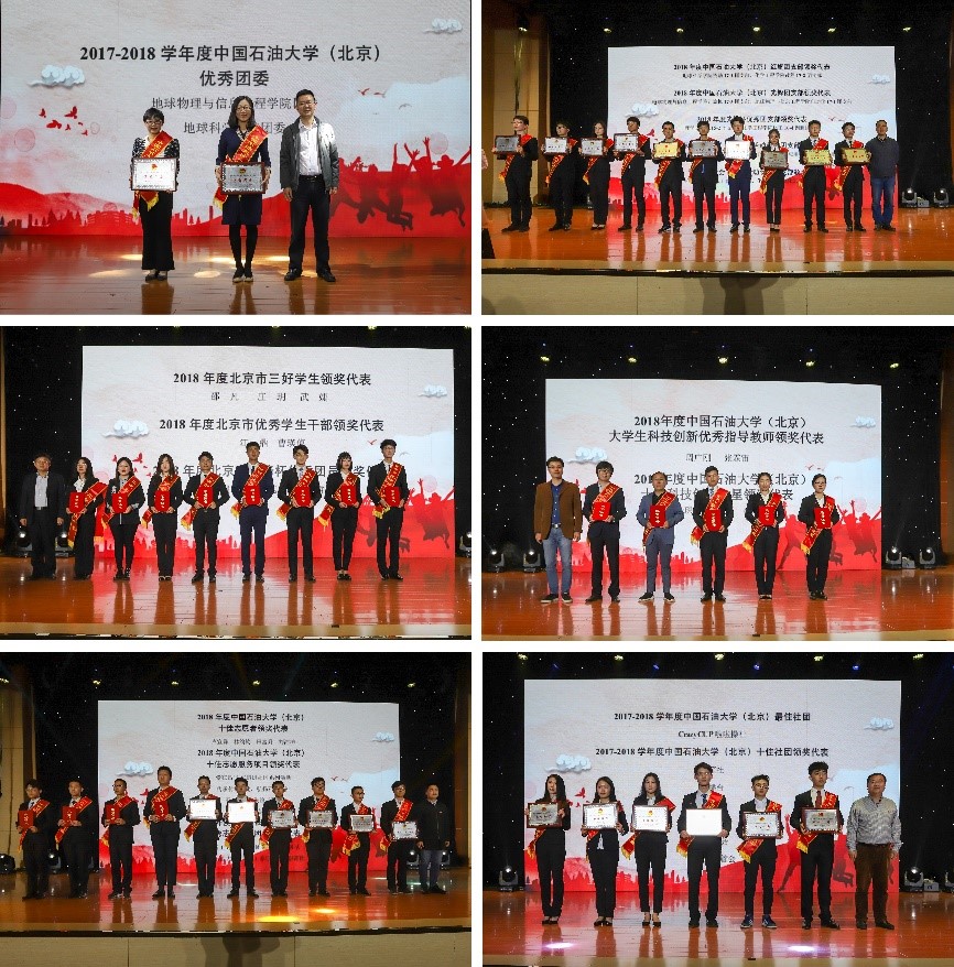 大會(huì)以“與新時(shí)代同行,為中國(guó)夢(mèng)奮斗”為主題,展示了石大青年榜樣的青春風(fēng)采,對(duì)一年來(lái)在學(xué)校共青團(tuán)工作中涌現(xiàn)出來(lái)的各類先進(jìn)集體和優(yōu)秀個(gè)人進(jìn)行表彰。韓尚峰為榮獲2018年全國(guó)“天翼·互聯(lián)網(wǎng)+教育”進(jìn)鄉(xiāng)村暑期社會(huì)實(shí)踐專項(xiàng)活動(dòng)的優(yōu)秀團(tuán)隊(duì) “信息人·教育夢(mèng)”以及榮獲2018年“青年服務(wù)國(guó)家”首都大中專學(xué)生暑期社會(huì)實(shí)踐的百?gòu)?qiáng)團(tuán)隊(duì)“圓夢(mèng)大涼山,會(huì)夢(mèng)教育行”和“助力北京冬奧,探訪延慶組委”頒獎(jiǎng)。與會(huì)職能部門(mén)負(fù)責(zé)人分別為獲評(píng)學(xué)校優(yōu)秀團(tuán)委、優(yōu)秀團(tuán)支部、優(yōu)秀學(xué)生干部、三好學(xué)生、優(yōu)秀志愿服務(wù)項(xiàng)目、科技創(chuàng)新優(yōu)秀指導(dǎo)老師及科技創(chuàng)新之星等28項(xiàng)榮譽(yù)的獲獎(jiǎng)代表頒獎(jiǎng)。