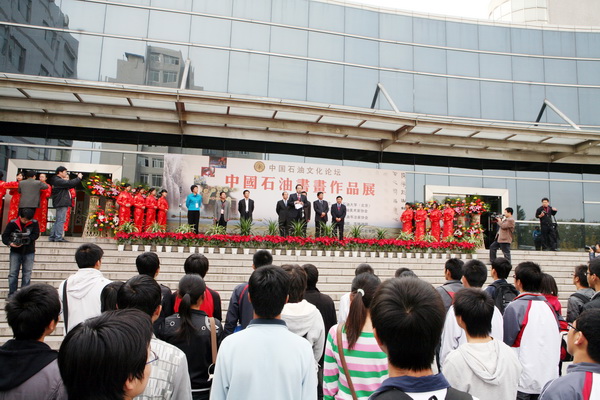 10月27日下午,“中國(guó)石油文化論壇”重要活動(dòng)之一的中國(guó)石油書(shū)畫(huà)展在學(xué)校第三教學(xué)樓前舉行了隆重的剪彩儀式。
