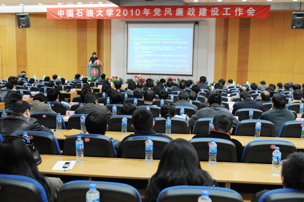 會上,校黨委書記蔣慶哲發表講話。蔣書記指出,2010年黨風廉政建設工作會議是全校上下認真學習貫徹十七屆四中全會精神、中紀委第十七屆五次全會精神,以及教育部紀檢監察工作會議精神的一次重要會議,也是繼續落實學?!笆晃濉币巹?、制定“十二五”規劃,不斷開創學校各項事業發展新局面的形勢下召開的一次重要會議。他強調,全校教職工尤其是黨員領導干部要深刻認識加強學校反腐倡廉建設的重要性緊迫性,切實增強使命感責任感,認真領會和貫徹上級有關黨風廉政建設的基本要求,切實把它放在學校全局中謀劃和部署,并作為一項重要政治任務抓緊抓好。