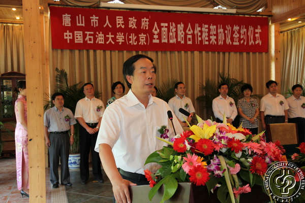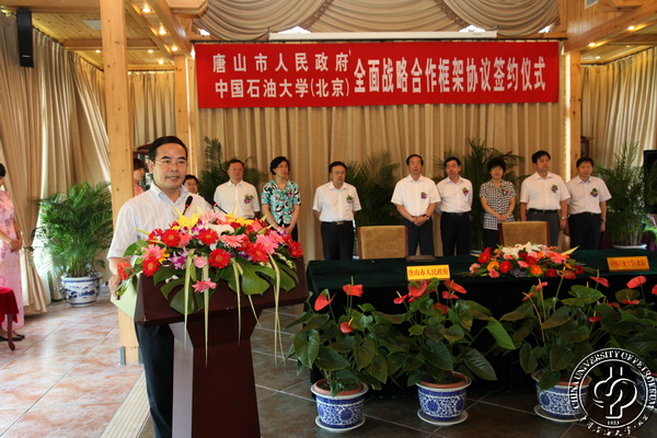蔣慶哲在致辭中指出,唐山是一座美麗的城市,歷史悠久,人文厚重,區(qū)位優(yōu)勢(shì)明顯,自然資源豐富,具有巨大的發(fā)展?jié)摿ΑV袊痛髮W(xué)(北京)是“211工程”重點(diǎn)建設(shè)高等院校和國家985工程“優(yōu)勢(shì)學(xué)科創(chuàng)新平臺(tái)”建設(shè)的高等院校。成立半個(gè)多世紀(jì)以來,中國石油大學(xué)為國家培養(yǎng)了10萬余名優(yōu)秀專門人才,為新中國的石油工業(yè)作出了重要貢獻(xiàn)。此次協(xié)議的簽署,是石油大學(xué)積極探索服務(wù)區(qū)域經(jīng)濟(jì)發(fā)展的重要舉措,是對(duì)推動(dòng)官、產(chǎn)、學(xué)、研相結(jié)合發(fā)展模式的有益實(shí)踐。蔣慶哲表示,將充分發(fā)揮石油大學(xué)的人才資源優(yōu)勢(shì),為唐山的經(jīng)濟(jì)、社會(huì)發(fā)展發(fā)揮積極的推動(dòng)作用。