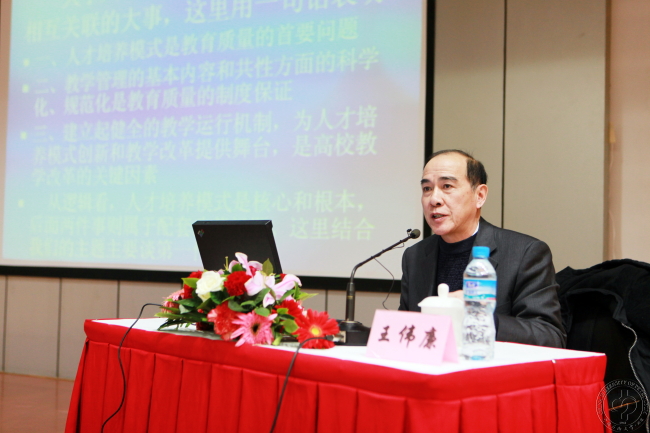 王偉廉重點就“什么是人才培養(yǎng)模式”、“為什么說人才培養(yǎng)模式是教育質量的首要問題”、“如何進行人才培養(yǎng)模式的頂層設計”三個問題進行了闡釋。他認為人才培養(yǎng)模式是關于培養(yǎng)什么人和如何培養(yǎng)人的總體構思和具體實施的總和,高校的人才培養(yǎng)應符合社會發(fā)展、科技文化發(fā)展對人才的要求以及人才自身發(fā)展的要求。從這三個方面的要求出發(fā)提取和選擇培養(yǎng)目標,進行宏觀、中觀、微觀三個層面的人才培養(yǎng)模式設計,通過合適的程序編制出培養(yǎng)方案,并通過具體的教育教學活動把它們扎扎實實落實下去,就會實現預期的人才質量。