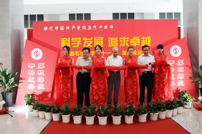6月13日下午,中國石油大學“十一五”發(fā)展成就展暨書畫攝影展在中油大廈一樓大廳開展。校領導蔣慶哲、張來斌、剛文哲、陳大恩、徐春明、龐雄奇,老領導華澤澎出席了開展儀式,蔣慶哲、張來斌、華澤澎為展覽剪彩。