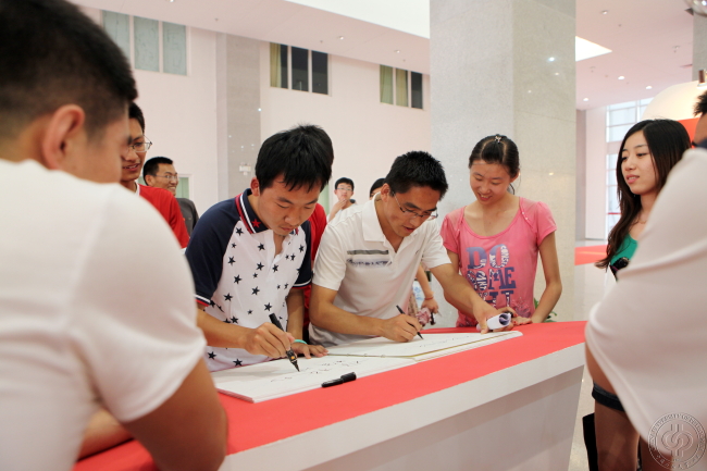 相關職能部門和有關單位負責人、離退休教師及各院系學生代表參加了開展儀式。儀式結束后,師生們紛紛在展覽留言簿上簽名留念,并寫下了對石大美好明天的深深祝福。