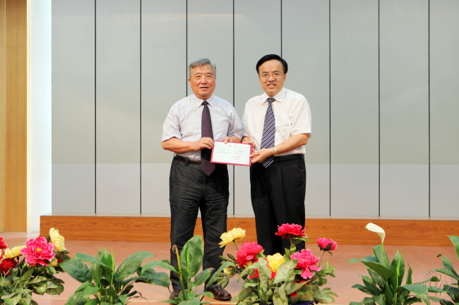 6月26日下午,邱中建院士從校長張來斌手中接過聘書,受聘擔任中國石油大學地球科學學院名譽院長,并作專題報告。