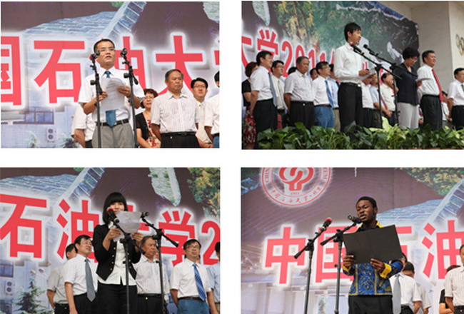 工商管理學(xué)院2011級本科生單清青代表新生發(fā)言,描繪了夢想,并立下了志愿。來自加納的石油工程學(xué)院2011級本科生阿薩莫代表留學(xué)生新生講話,用稍顯生澀的中文卻表達了對石油大學(xué)深深的熱愛。地球科學(xué)學(xué)院2010級碩士研究生劉悅代表所有在校生向新生介紹經(jīng)驗、傳授方法,幫助新生適應(yīng)新的生活。機械與儲運工程學(xué)院教師帥健教授代表廣大教師向新生們的到來表示了歡迎,并寄托了老師們更多的期望。