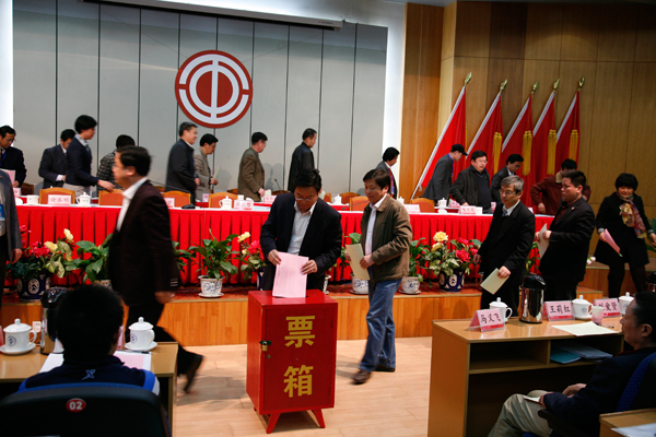 會議首先以舉手表決的形式,通過了大會選舉辦法,第五屆工會委員會委員、工會經費審查委員會委員候選人名單,以及總監(jiān)票人、監(jiān)票人、總計票人、計票人名單。最后,在總監(jiān)票人徐樟有的主持下,進行了大會選舉。