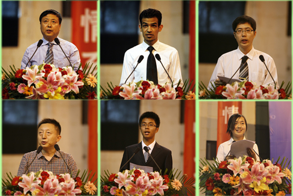 畢業(yè)本科生代表、石油工程學院的洪鋮,畢業(yè)研究生代表、化學工程學院的惠耀楠,畢業(yè)留學生代表、沙特阿拉伯的薩莫分別發(fā)言,表達了對母校和老師的感謝、對同學的惜別之情;在校生代表、地球科學學院的李雨澈致歡送辭,表達了對學長學姐的良好祝愿;教師代表、工商管理學院的劉毅軍教授囑托同學們要心系父母、心存善念、心記社會責任;家長代表、中國石油集團東方地球物理公司總經(jīng)理助理、黨委組織部部長王治富表達了對學校的感謝和對畢業(yè)生的祝福。