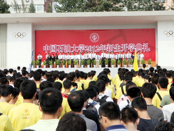 9月6日上午,中國石油大學2012年新生開學典禮在紅旗操場隆重舉行,校領導蔣慶哲、張來斌、雷玉江、吳小林、陳大恩、龐雄奇、張士誠,以及各學院和職能部門的主要負責人出席了典禮,4000余名新生參加了典禮。開學典禮由黨委副書記雷玉江主持。
