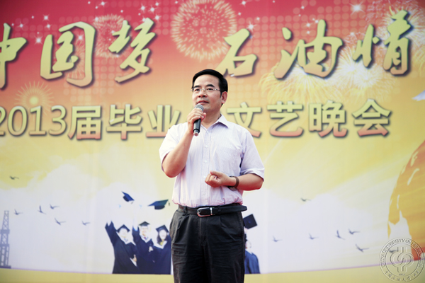 619日晚,中國石油大學舉行“中國夢·石油情”2013屆畢業生晚會。黨委書記蔣慶哲,黨委副書記雷玉江,副校長吳小林、龐雄奇以及學校各職能部門、各學院負責人與畢業生一起觀看了演出。