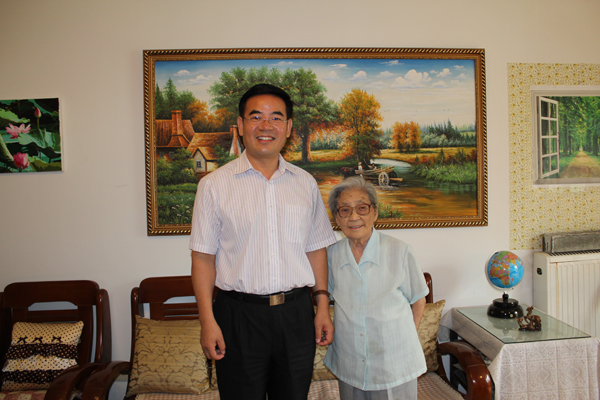黨委書記蔣慶哲為已故院士朱亞杰的夫人楊岫云慶賀百歲生日
