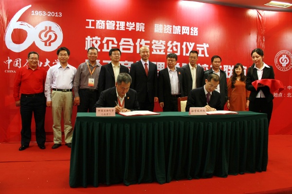 10月2日下午,石大與融資城網絡校企合作簽約儀式暨工商管理學院校友聯誼會在軍都度假村舉行。石大副校長陳大恩、原黨委書記華澤澎,融資城網絡董事長董育銘、中海石油深圳分公司副總經理高廣生、中國石油集團經濟技術研究院副院長呂建中,回校參加校慶的校友,工商管理學院相關負責人以及師生代表參加了簽約儀式暨校友聯誼會。