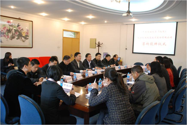 11月14日上午,中國石油大學與北京機電院高技術(shù)股份有限公司舉行了科學研究與人才培養(yǎng)合作框架協(xié)議簽約授牌儀式。中國石油大學黨委書記蔣慶哲、副校長徐春明,北京機電院高技術(shù)股份有限公司總經(jīng)理趙傳軍出席簽約授牌儀式,石大相關(guān)職能部門負責人、理學院教師代表參加了儀式。蔣慶哲、趙傳軍分別代表校企雙方在協(xié)議書上簽字,并共同為兩家合作建設(shè)的“京城固廢與水資源化技術(shù)研究中心”、“研究生工作站”揭牌。
