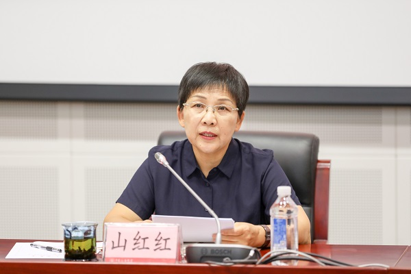 山紅紅代表學校黨委作動員講話,就開展好學校主題教育提出三點意見。