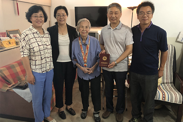 民盟北京市委領導為石大離退休教職工陳玉頒發“慶祝中華人民共和國成立70周年”紀念章