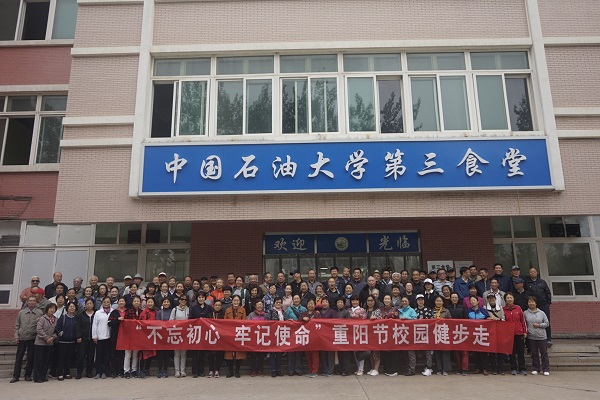 10月11日,石大離退休工作處在東校園舉辦“不忘初心、牢記使命”重陽節校園健步走活動,130余名離退休教職工參加活動。