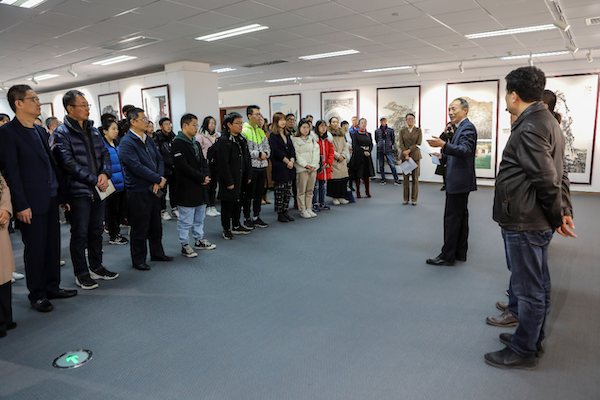 開幕式上,鮑志東代表學校向主辦方及各位嘉賓表示歡迎與感謝,并介紹了學校的基本情況。他指出,近年來,學校不斷加強和改進美育工作,注重以文化人、以美育人,圍繞“文明石大、厚重石大、活力石大、美麗石大”的目標,積極為學生成長發展創造良好的校園文化環境,期待以此次畫展為良好的開端,在文化建設方面與社會各界進行更寬領域、更多形式、更深層次的合作,讓優秀的藝術作品、藝術家,走進石大、走近師生;希望同學們能夠從優秀的文化藝術作品中汲取營養、涵養品格、活躍思維、開闊視野。